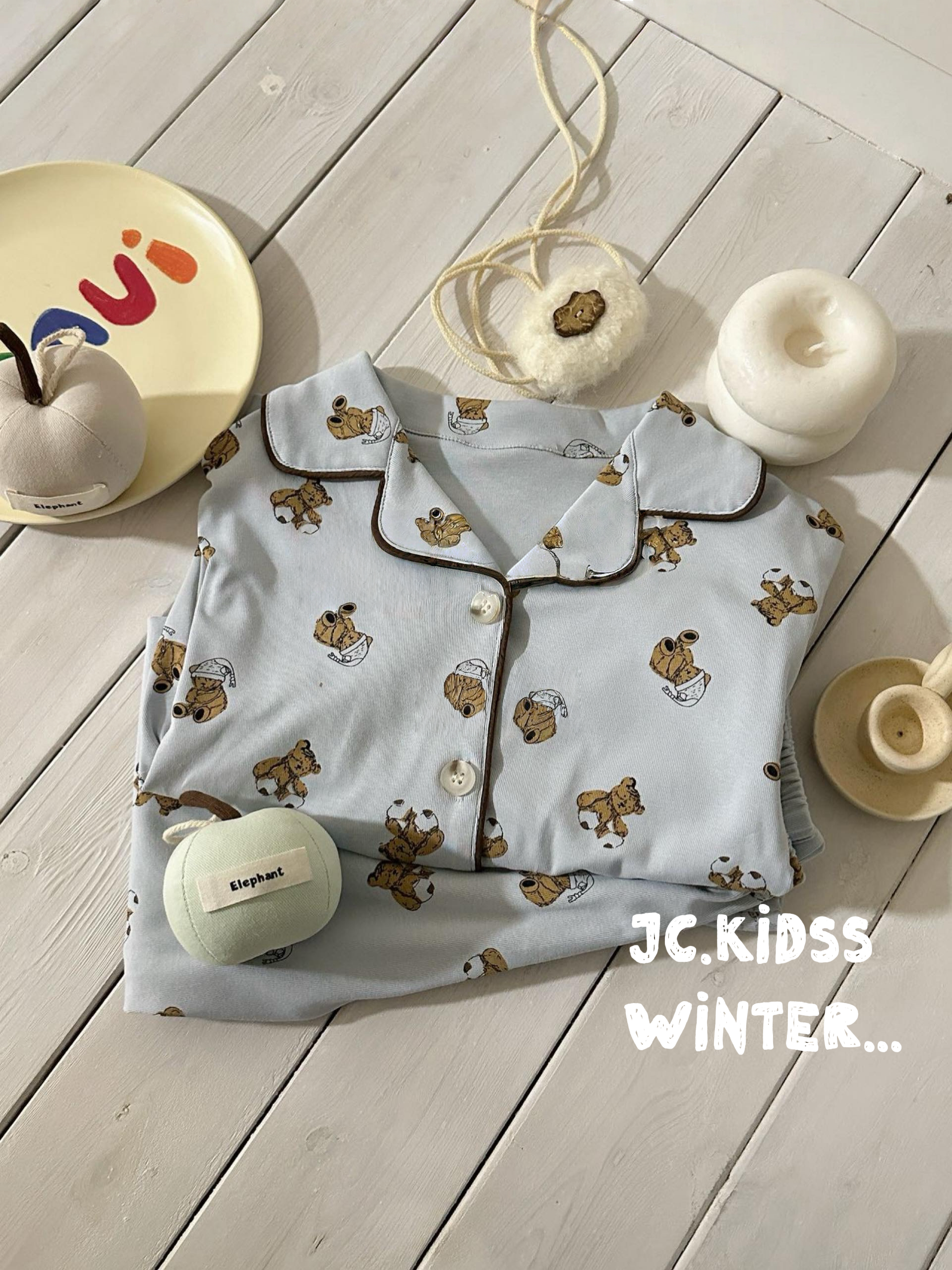 HW223 淺藍熊仔開胸家居服