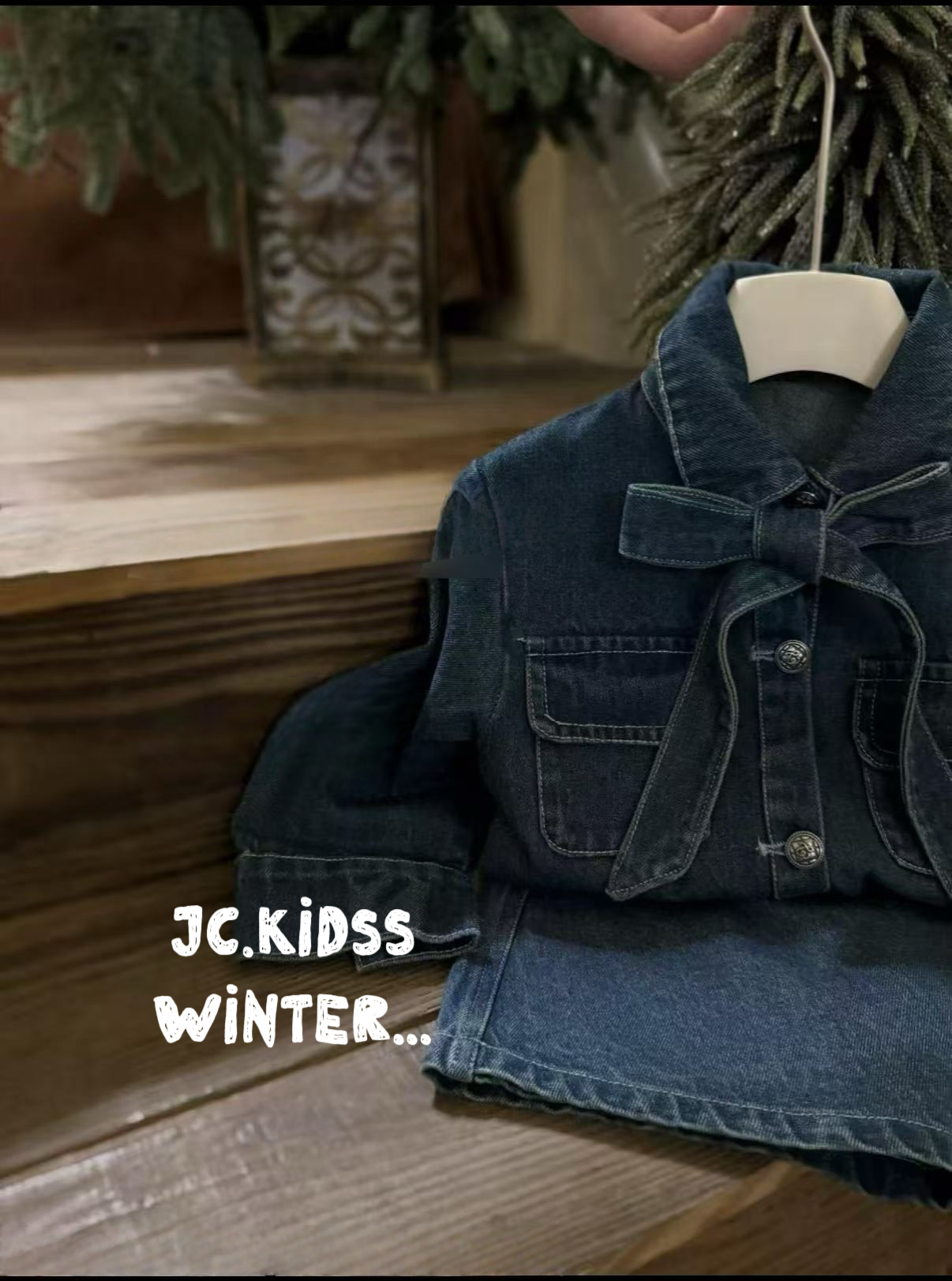 呢件牛仔套裝裙設計得簡約而又時尚✨,搭配可愛嘅蝴蝶結,增添了俏皮感,適合小朋友穿著。