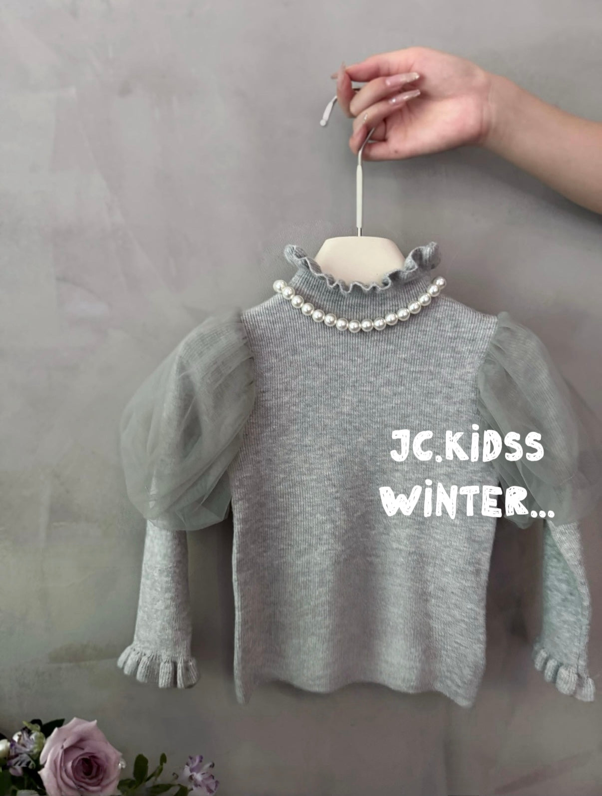 呢件企領蕾絲泡泡袖打底上衣設計得優雅而獨特✨,搭配可愛的泡泡袖,增添咗一份俏皮感,特別適合小朋友冬季穿著。